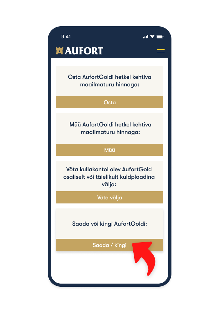 | Saaja saab kulla koheselt kätte. Kui tal pole Auforti kullakontot, saab ta juhised selle registreerimiseks. | ![]() ![]() |